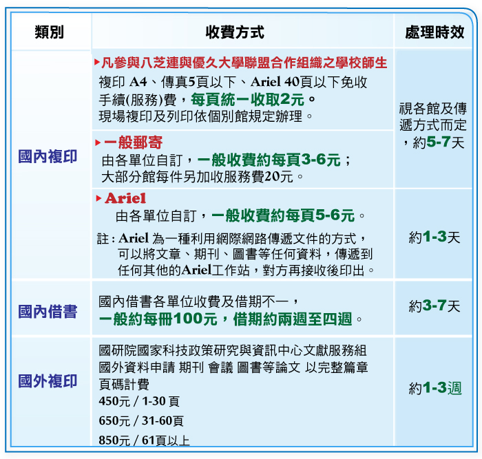 | 全國文獻傳遞服務 |