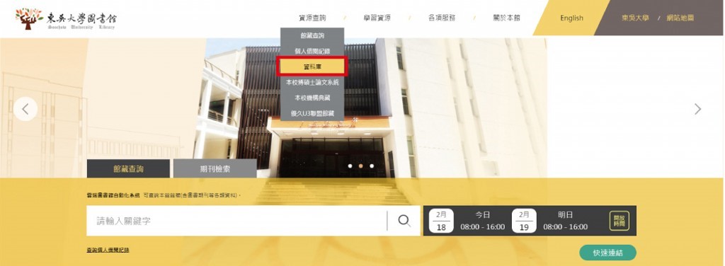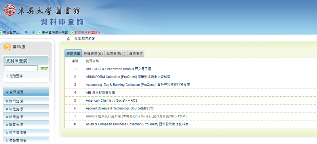 東吳大學圖書館(以下簡稱本館)為便利本校教職員工、在學學生由校外連線利用本館電子資源,特提供本服務。透過認證後,即能查詢本館電子資源。 |